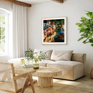 Plagát v ráme zo svetlého duba - Večer na čínskej ulici - 100x70 cm
