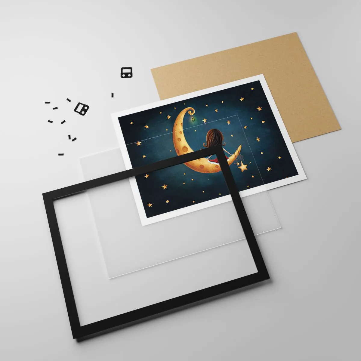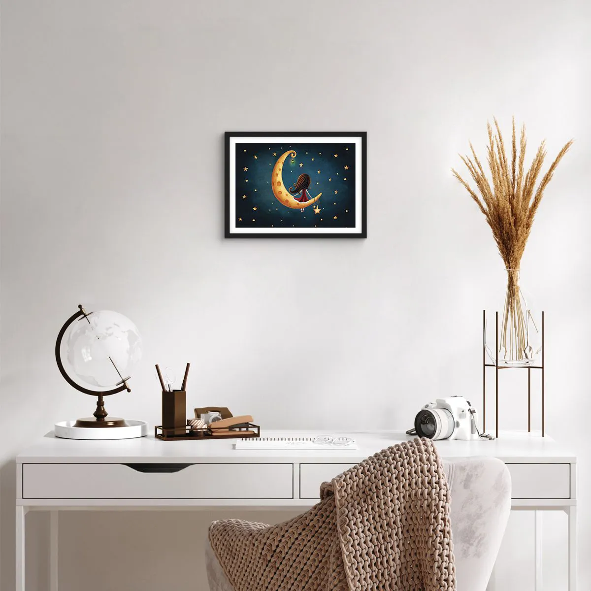 • Pre deti, Dievča, Mesiac, Pre deti, fantasy, vesmír a astronómia, Do detskej izby Modrá, oranžová, Vodorovný