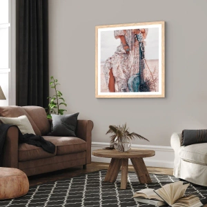 Plagát v ráme zo svetlého duba - Kvetinové deti na ceste - 50x50 cm
