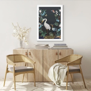 Plagát v bielom ráme - Vtáčí sprievod - 70x50 cm