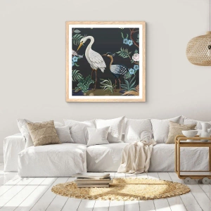Plagát v ráme zo svetlého duba - Vtáčí sprievod - 50x70 cm