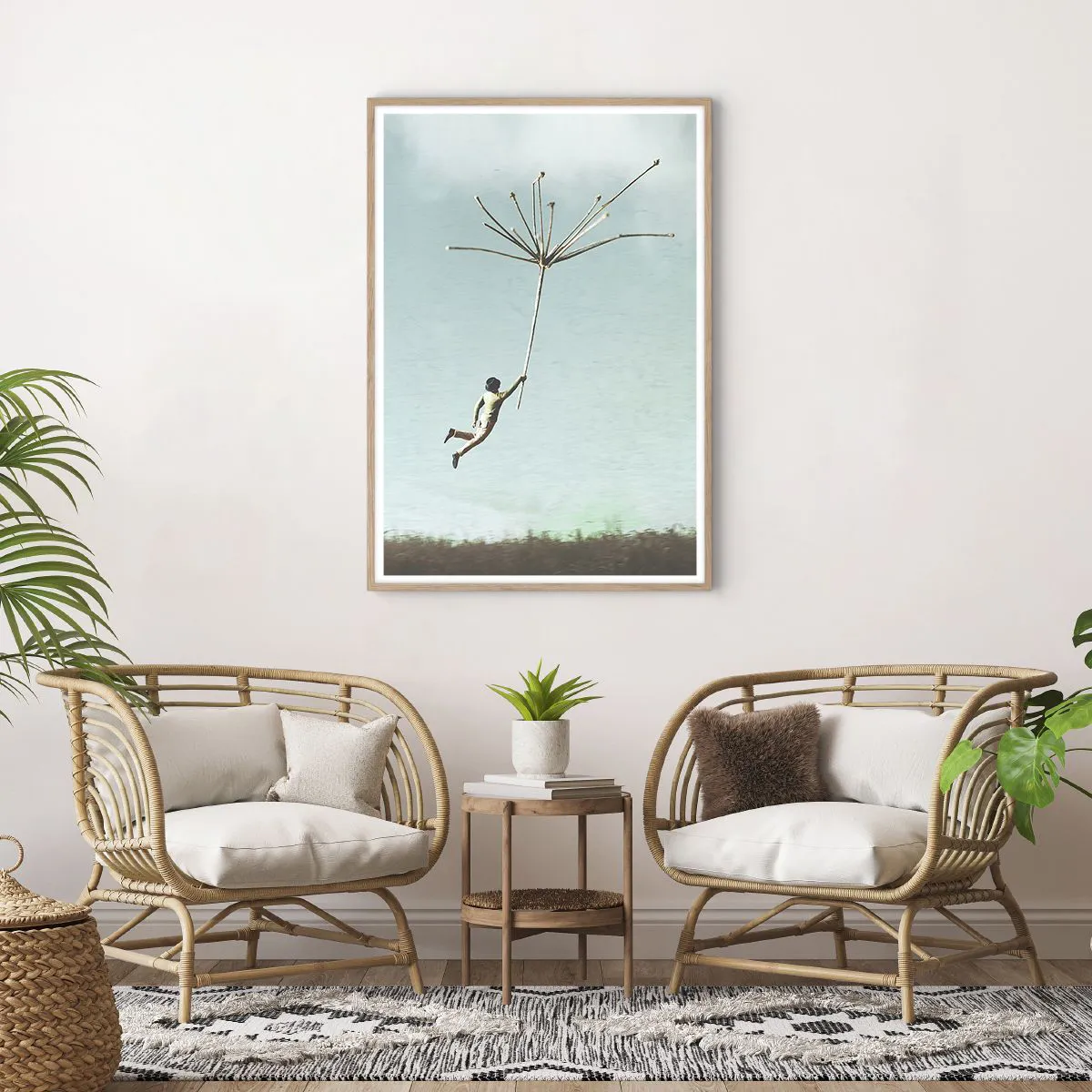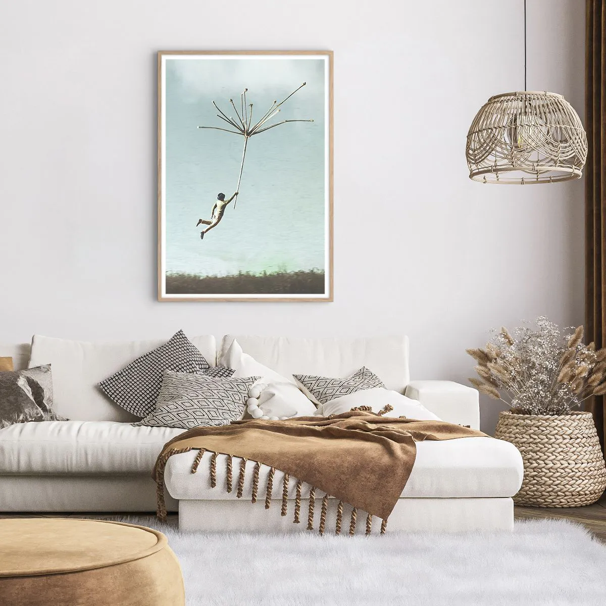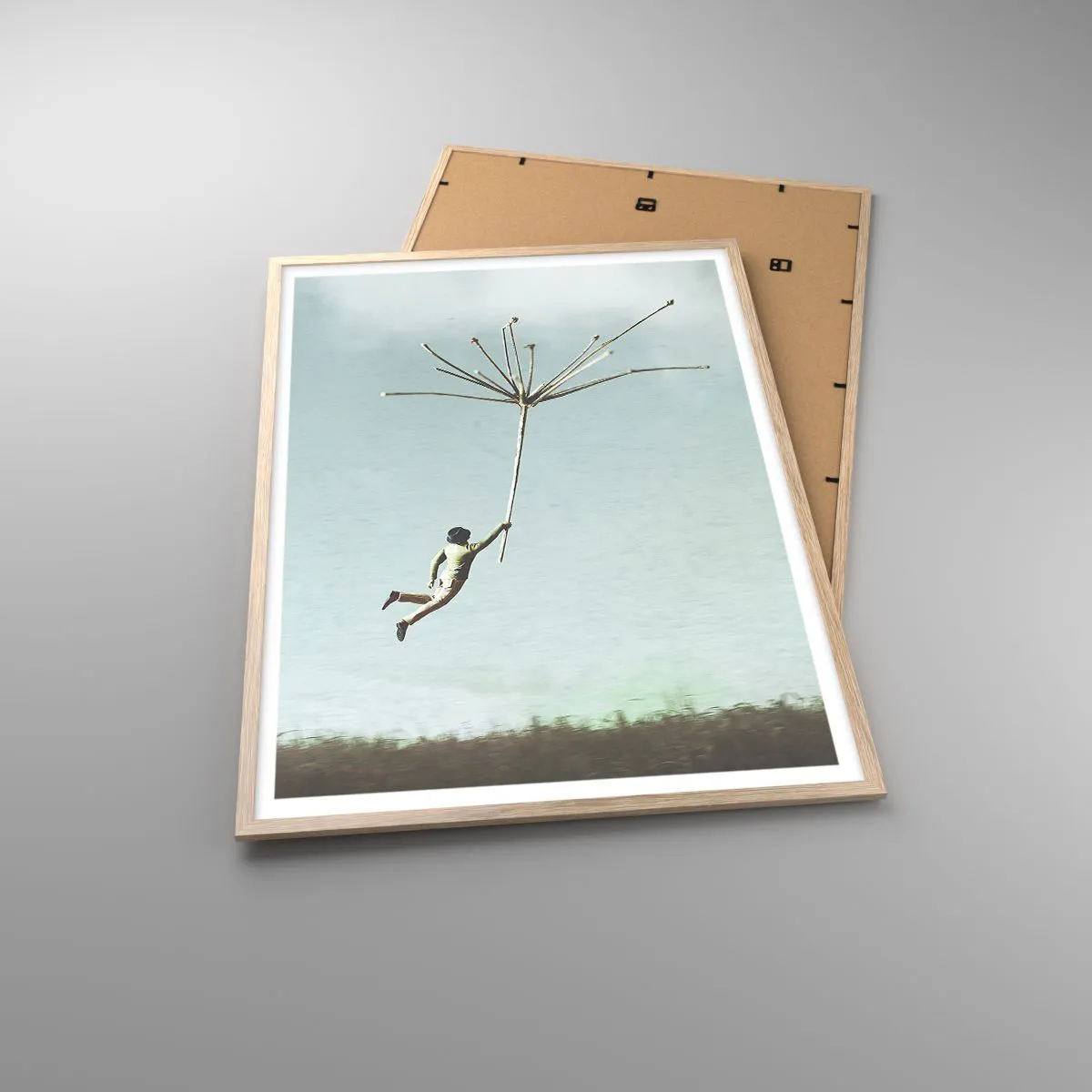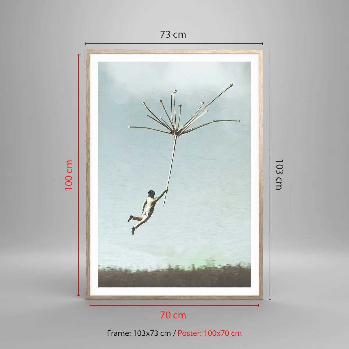 Plagát v ráme zo svetlého duba - Lietajúca púpava - 70x100 cm