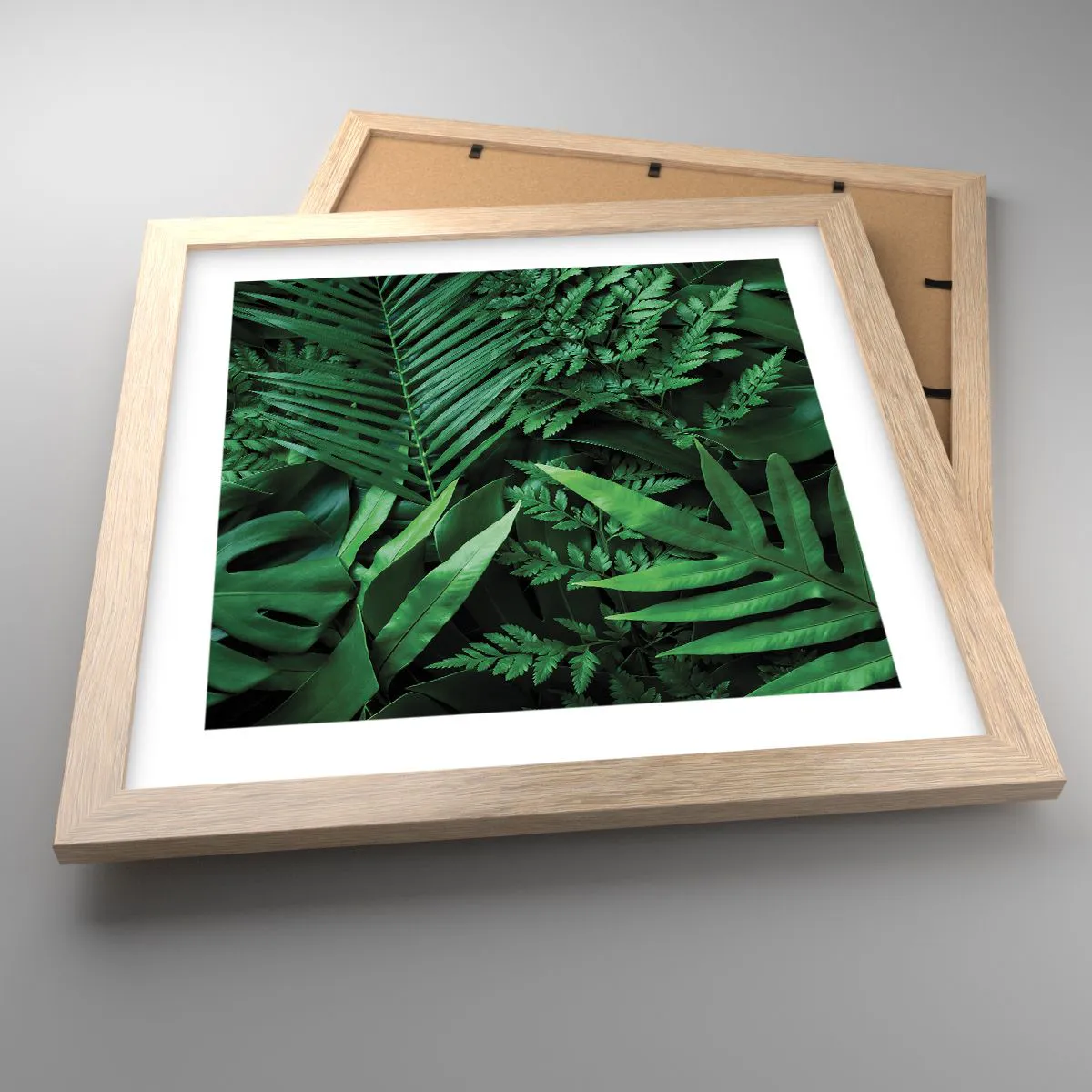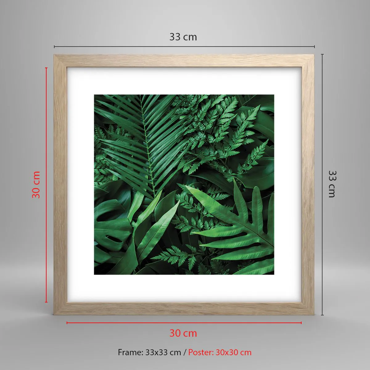 Plagát v ráme zo svetlého duba - Objaté v zeleni - 30x30 cm