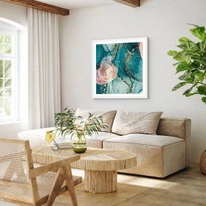 Plagát v bielom ráme - Modré hodváb modré, ružový tyl - 70x100 cm