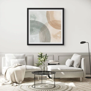 Plagát v čiernom ráme - Geometrické tvary v pastelových zemitých tónoch - 50x70cm - Prenikanie svetov - Moderná nástenná dekorácia do obývacej izby a spálne ARTTOR