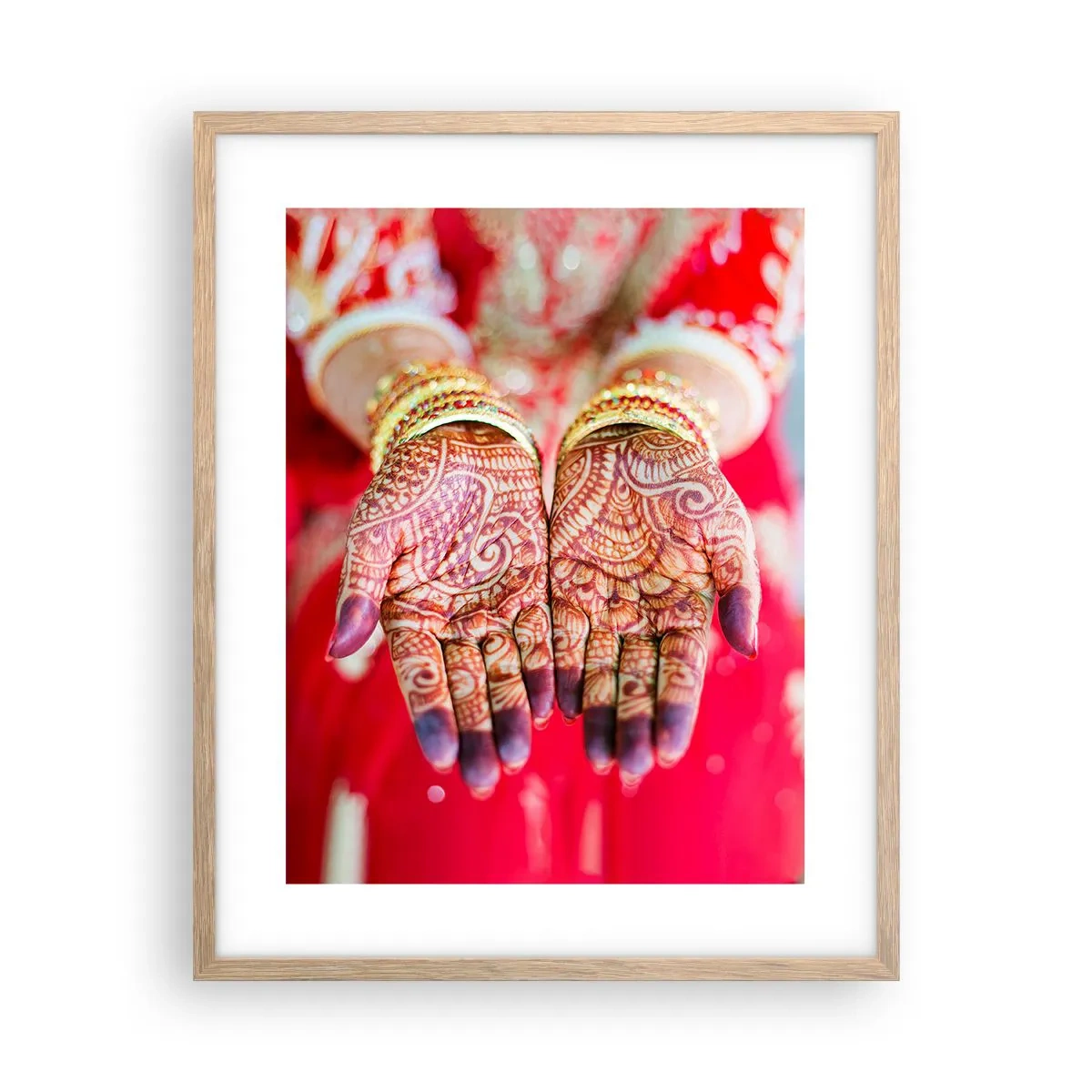 Plagát v ráme zo svetlého duba - Pripravená chytiť šťastie - 40x50 cm