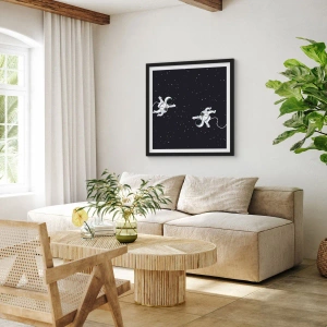 Plagát v čiernom ráme - Dvaja astronauti vznášajúci sa vo vesmíre - 50x70cm - Kozmický tanec - Moderná nástenná dekorácia do obývacej izby a spálne ARTTOR