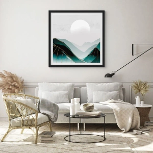Plagát v čiernom ráme - Abstraktné hory v odtieňoch zelenej s jemnou zlatou - 50x70cm - V plnom majestáte - Moderná nástenná dekorácia do obývacej izby a spálne ARTTOR