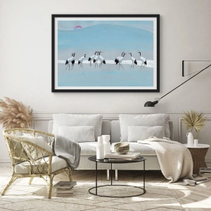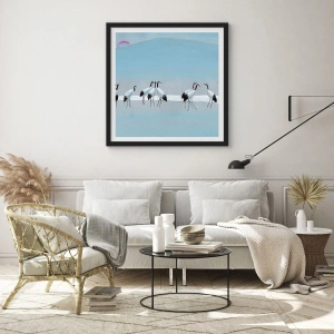 Plagát v čiernom ráme - Minimalistická ilustrácia žeriavov na pastelovom pozadí. - 50x70cm - Po horúcom dni - Moderná nástenná dekorácia do obývacej izby a spálne ARTTOR