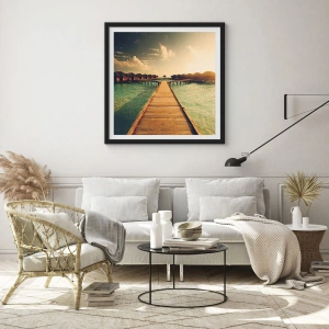 "Teplá pozvánka" je plagát, ktorý nás prenesie do exotického sveta trópov. Drevené mólo vedúce k hausbótom je obklopené pokojom a teplom zapadajúceho slnka. Tento obraz plný harmónie a romantiky je dokonalou dekoráciou, ktorá do interiéru vnáša atmosféru relaxácie a sviatočného odpočinku.