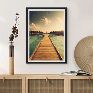 - Tento plagát zobrazuje drevené mólo vedúce k chatkám na nábreží pri západe slnka. Ideálne do interiérov inšpirovaných exotikou a pokojom.