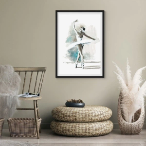 - Tento plagát zobrazuje baletnú tanečnicu v bielych šatách počas vystupovania. Ideálny do interiérov plných štýlu a jemnosti.