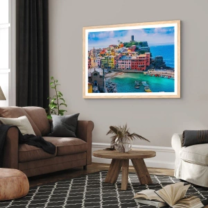 Plagát v ráme zo svetlého duba - Stredomorské kúzelné mestečko - 30x40 cm
