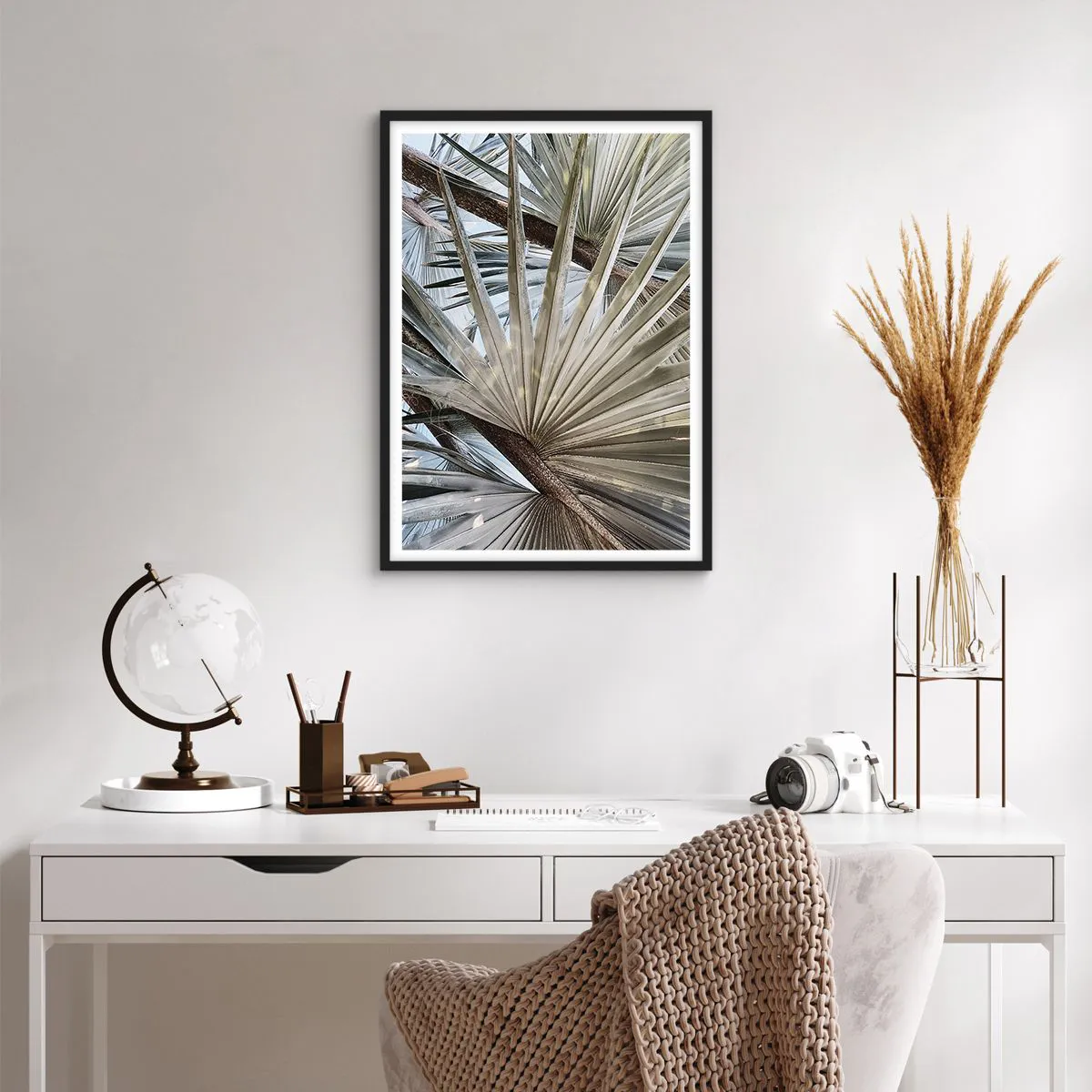 Plagát v čiernom ráme - Detailný záber palmových listov v pastelových odtieňoch - 50x70cm - Vejáre v trópoch - Moderná nástenná dekorácia do obývacej izby a spálne ARTTOR