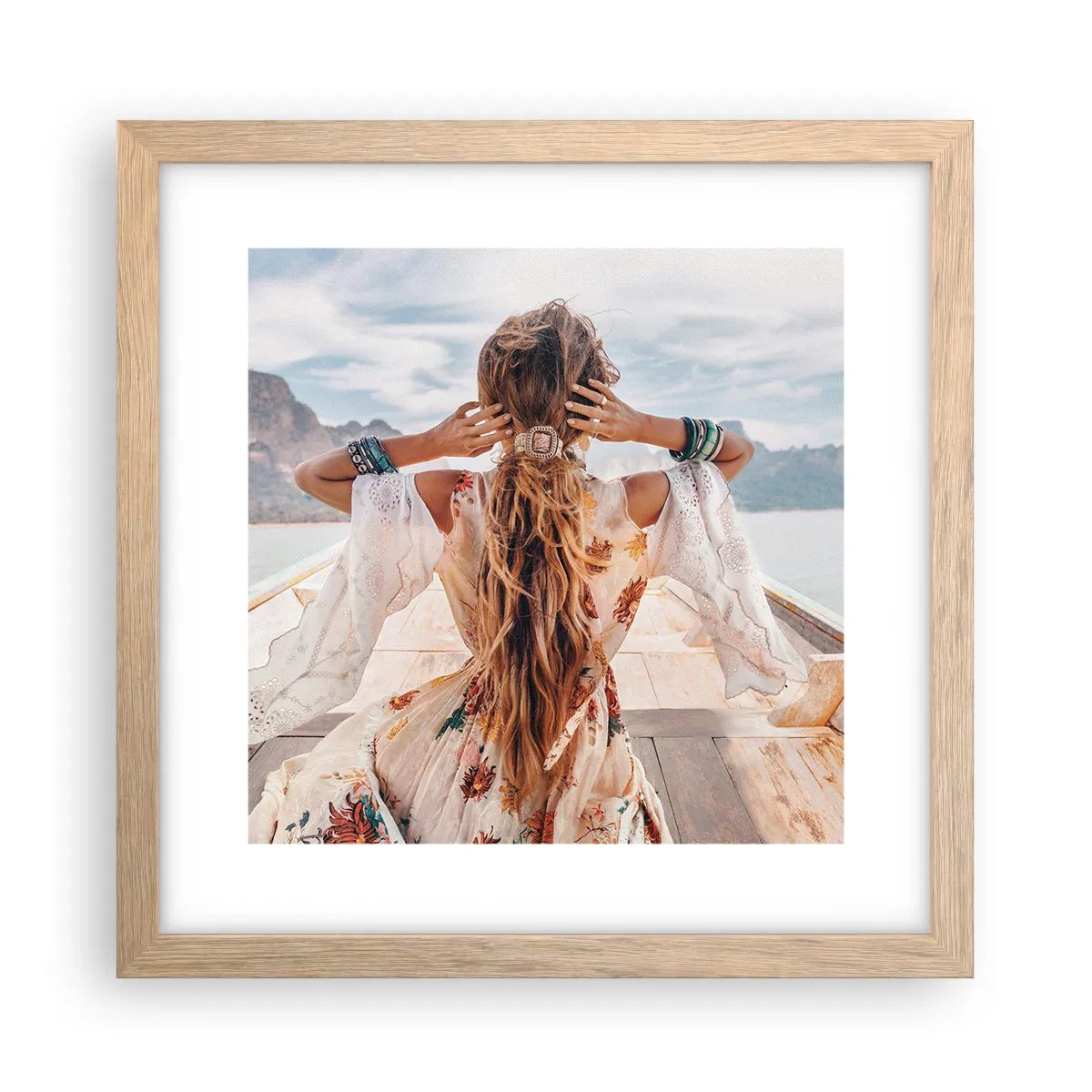 Plagát v ráme zo svetlého duba - Na ceste ku šťastiu - 30x30 cm