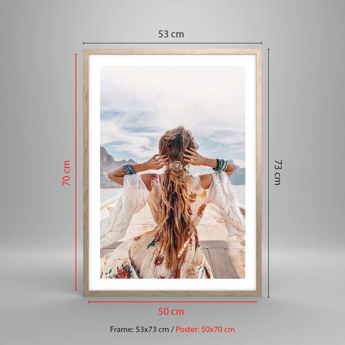 Plagát v ráme zo svetlého duba - Na ceste ku šťastiu - 50x70 cm