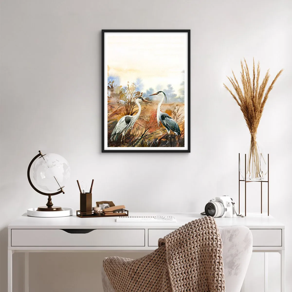 Motív žeriavu symbolizuje pôvab, dlhovekosť a pokoj, vďaka čomu je tento plagát vynikajúcou voľbou pre interiéry určené na inšpiráciu a relaxáciu. Teplé farby jesene, jemné kontúry vegetácie a jemné odtiene oblohy vytvárajú harmonický celok, ktorý sa dokonale hodí k modernému aj klasickému interiérovému dizajnu.