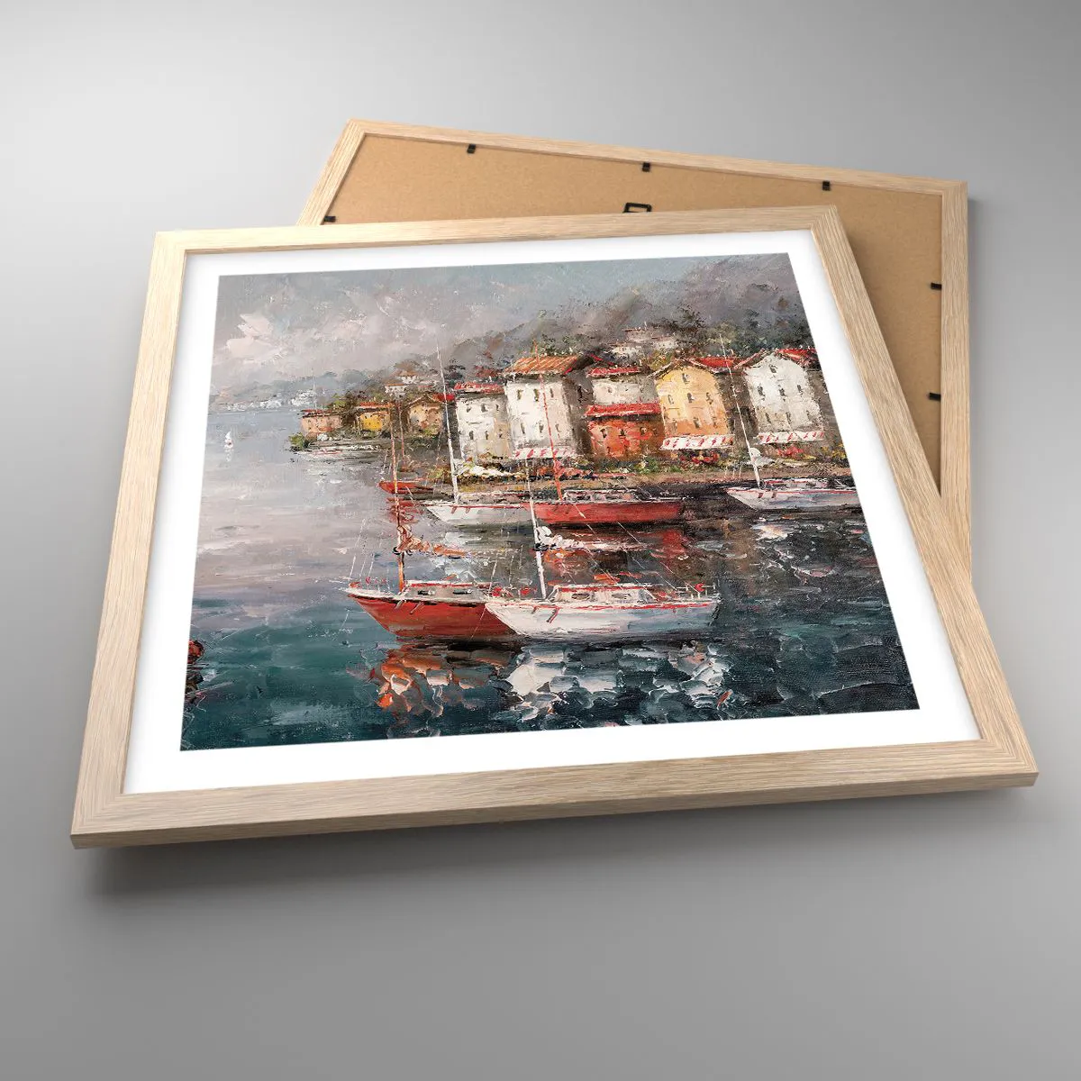 Plagát v ráme zo svetlého duba - Romantický prístav - 40x40 cm