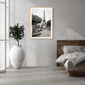 Plagát v ráme zo svetlého duba - Ak zábava, tak len v Paríži - 30x40 cm