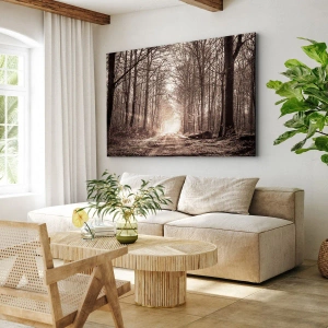 Jemné svetlo prenikajúce cez konáre stromov zdôrazňuje harmóniu a krásu prírody. Sépiová povrchová úprava obrazu dodáva teplo a eleganciu, vďaka čomu sa dokonale hodí do interiérov zariadených vo vintage, klasickom alebo minimalistickom štýle.