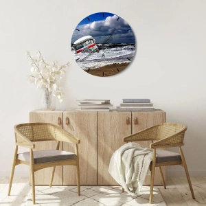 Hodiny sú vyrobené z bezpečného skla s hrúbkou 4mm. Technológia výroby hodín je v súlade s triedou bezpečnosti 2B2 podľa normy PN-EN 12600:2004, ktorá garantuje odolnosť proti nárazom. Hodiny na skle sú pripravené na zavesenie – majú kovový záves upevnený na zadnej strane hodín a penovú dištančnú podložku, ktorá upravuje vzdialenosť hodín od steny. Hodiny majú tichý plávajúci mechanizmus napájaný 1,5 V batériou - AA batéria (batéria nie je súčasťou balenia).