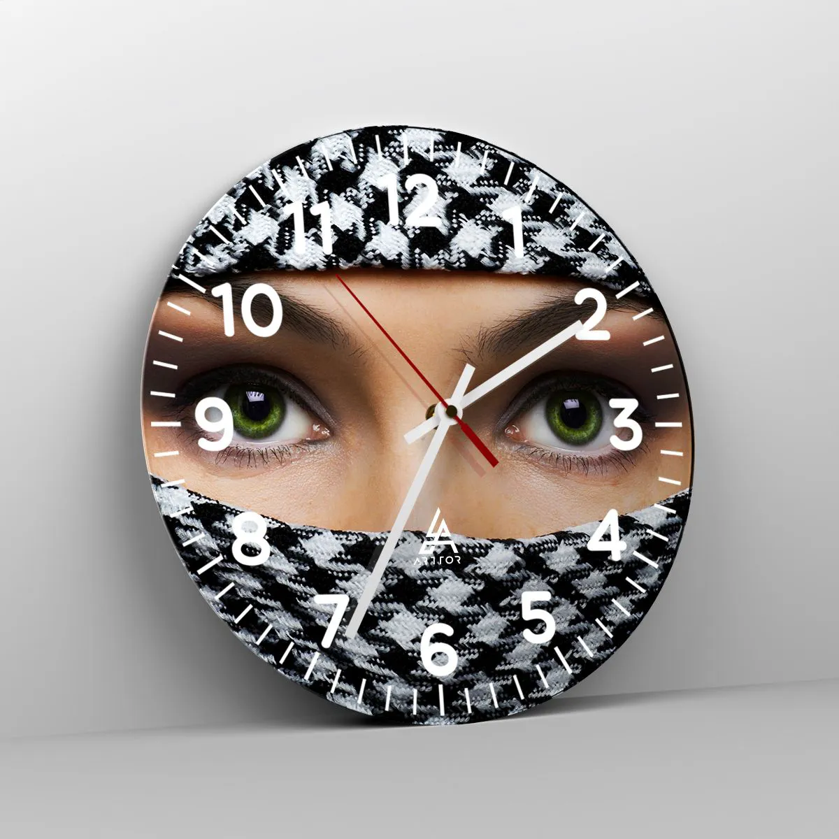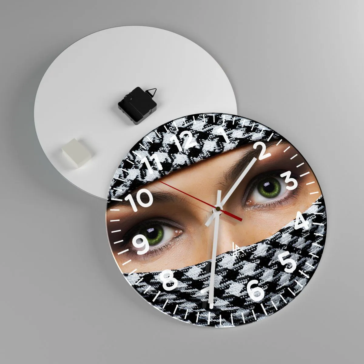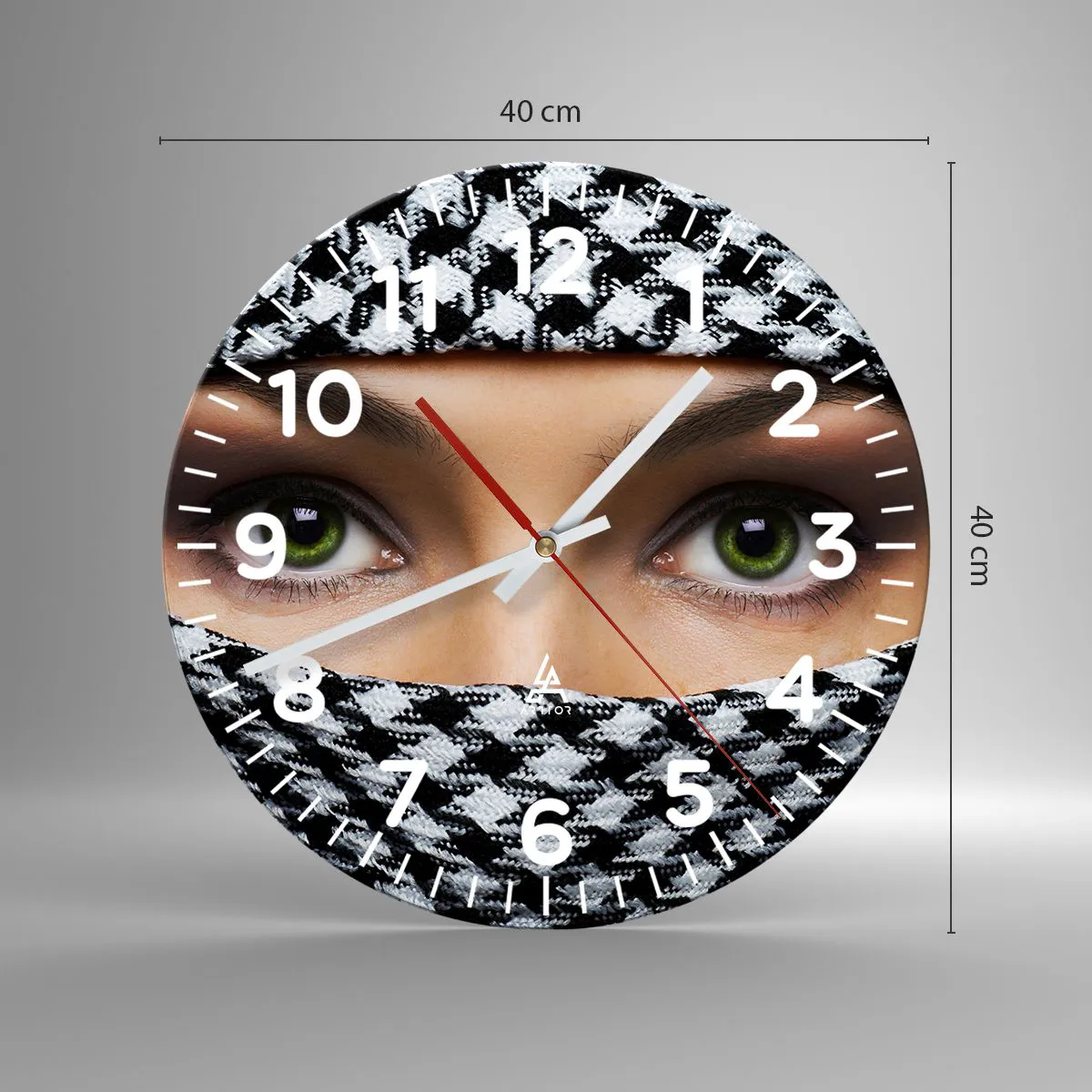 Nástenné hodiny - Portrét zahalenej zelenookej krásky - 40x40 cm
