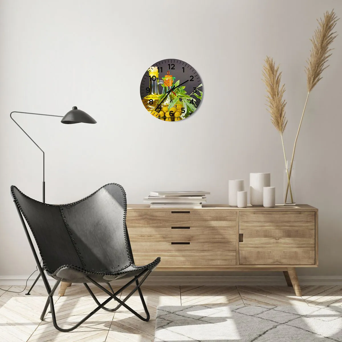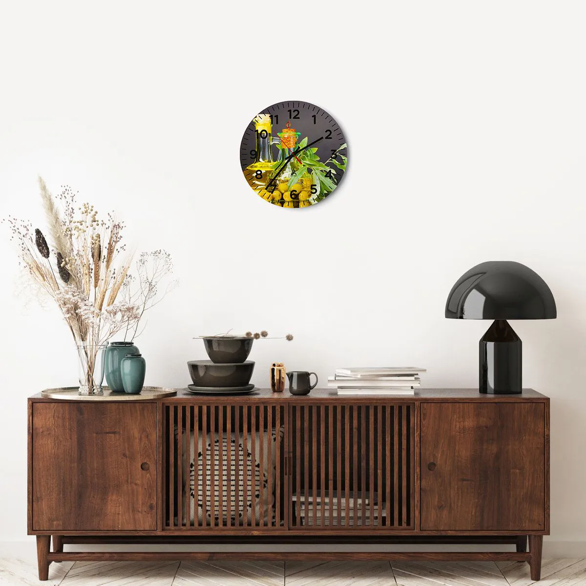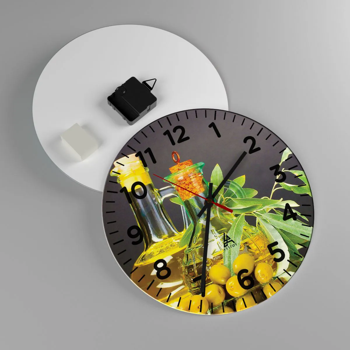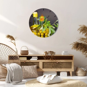 Nástenné hodiny - Zátišie s olivami a olejom - 30x30 cm