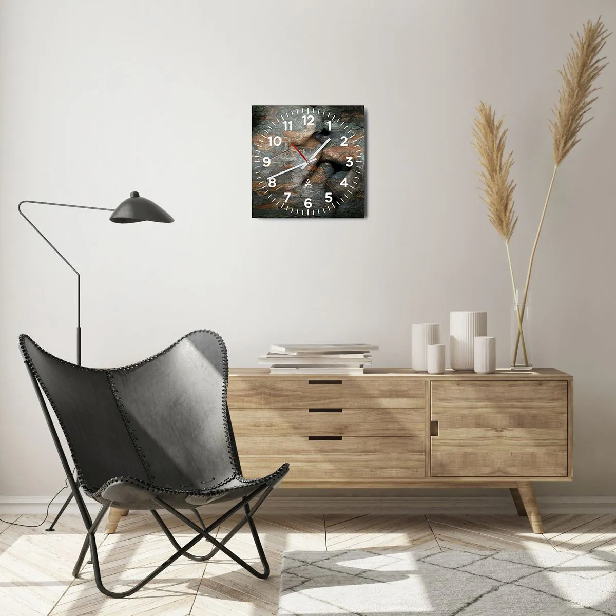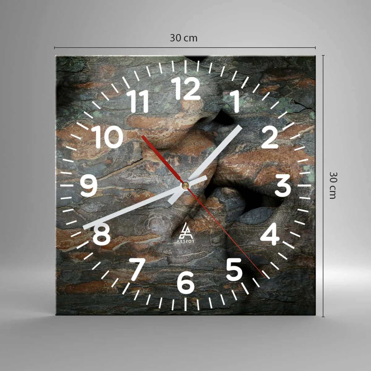 Hodiny sú vyrobené z odolného skla s hrúbkou 4 mm. Sklo zachováva prirodzené farby potlače