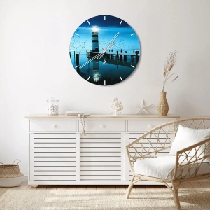 Hodiny sú vyrobené z bezpečného skla s hrúbkou 4mm. Technológia výroby hodín je v súlade s triedou bezpečnosti 2B2 podľa normy PN-EN 12600:2004, ktorá garantuje odolnosť proti nárazom. Hodiny na skle sú pripravené na zavesenie – majú kovový záves upevnený na zadnej strane hodín a penovú dištančnú podložku, ktorá upravuje vzdialenosť hodín od steny. Hodiny majú tichý plávajúci mechanizmus napájaný 1,5 V batériou - AA batéria (batéria nie je súčasťou balenia).