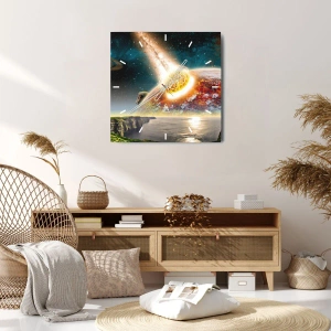 - Dynamická scéna zobrazujúca zrážku asteroidu so Zemou na kozmickom pozadí. Intenzívne ohnivé detaily a hviezdna obloha dodávajú kompozícii dramatický charakter, ideálny pre moderné interiéry.