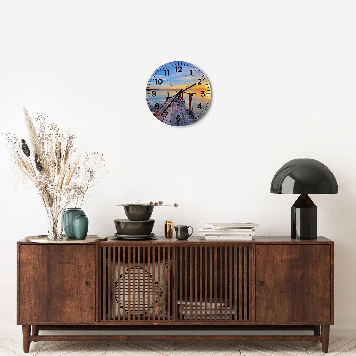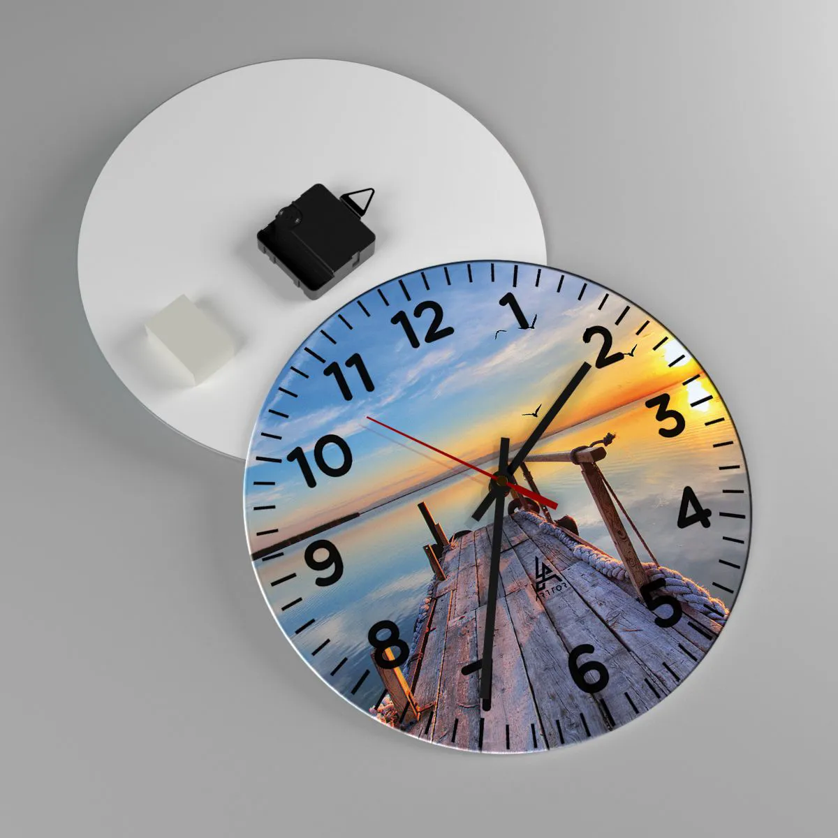Hodiny sú vyrobené z odolného skla s hrúbkou 4 mm. Sklo zachováva prirodzené farby potlače