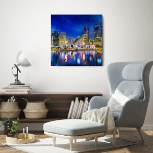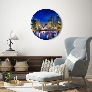 Dúhová noc metropoly sú mimoriadne štýlové nástenné hodiny, ktoré pútajú pozornosť svojím motívom nočného mesta. Obrázok zobrazuje mrakodrapy osvetlené farebnými svetlami, ktoré sa odrážajú vo vode a vytvárajú dynamický a inšpiratívny pohľad. Sú to perfektný dekoratívny prvok pre tých, ktorí si cenia modernosť a eleganciu.
