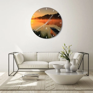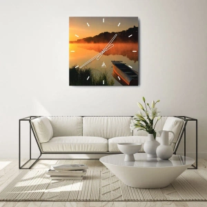 Nástenné hodiny - Východ slnka pri vode ako povrch zrkadla - 30x30 cm