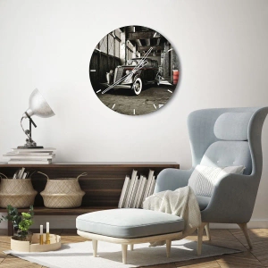 • Automobilový priemysel, Retro Auto, Továrenský sklad, Automobilový, Vintage a retro, Do kancelárie, Do pracovne, Do jedálne, Do predsiene, Do obývačky, Do spálne, Čierna, šedá, Okrúhly