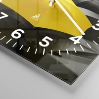 Hodiny sú vyrobené z bezpečného skla s hrúbkou 4mm. Technológia výroby hodín je v súlade s triedou bezpečnosti 2B2 podľa normy PN-EN 12600:2004, ktorá garantuje odolnosť proti nárazom. Hodiny na skle sú pripravené na zavesenie – majú kovový záves upevnený na zadnej strane hodín a penovú dištančnú podložku, ktorá upravuje vzdialenosť hodín od steny. Hodiny majú tichý plávajúci mechanizmus napájaný 1,5 V batériou - AA batéria (batéria nie je súčasťou balenia).