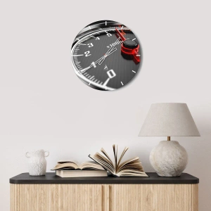 Nástenné hodiny - Pedál až do kovu - Detail tachometra v športovom štýle