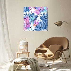 Nástenné hodiny - Chocholy v ružovej a blankytnej - 40x40 cm