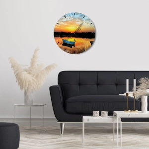 Nástenné hodiny - Pozeraj sa, počúvaj, medituj - Loď na pokojnej vode pri západe slnka