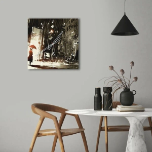 Nástenné hodiny - Poézia červeného dáždnika - 40x40 cm