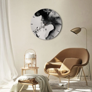 - Štýlové nástenné hodiny s umeleckým čiernobielym portrétom ženy. Minimalistické a elegantné, ideálne do moderného interiéru.