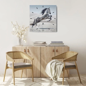Hodiny sú vyrobené z bezpečného skla s hrúbkou 4mm. Technológia výroby hodín je v súlade s triedou bezpečnosti 2B2 podľa normy PN-EN 12600:2004, ktorá garantuje odolnosť proti nárazom. Hodiny na skle sú pripravené na zavesenie – majú kovový záves upevnený na zadnej strane hodín a penovú dištančnú podložku, ktorá upravuje vzdialenosť hodín od steny. Hodiny majú tichý plávajúci mechanizmus napájaný 1,5 V batériou - AA batéria (batéria nie je súčasťou balenia).