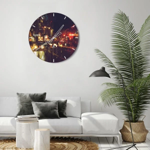 Ciferník hodín odráža dynamiku mestského života, kde sa svetlá pouličných lámp, neónových nápisov a bodových svetiel spájajú do harmonickej kompozície. Jemné detaily a intenzívne farby robia z hodín ideálne miesto pre moderné, industriálne alebo eklektické interiéry.