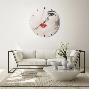 Nástenné hodiny - Hypnotizujúce a opojné - Umelecký portrét ženy s červenými perami a modrým okom
