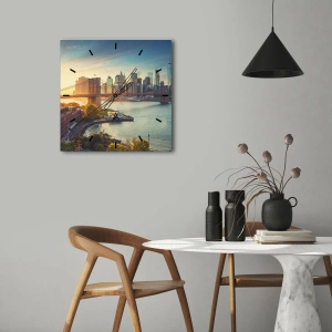 Nástenné hodiny „City Dawn“ sú jedinečným dekoratívnym doplnkom, ktorý spája modernú eleganciu s krásou architektúry. Pohľad na Brooklynský most a panorámu mesta pri západe slnka vnáša do interiéru inšpiratívnu atmosféru.