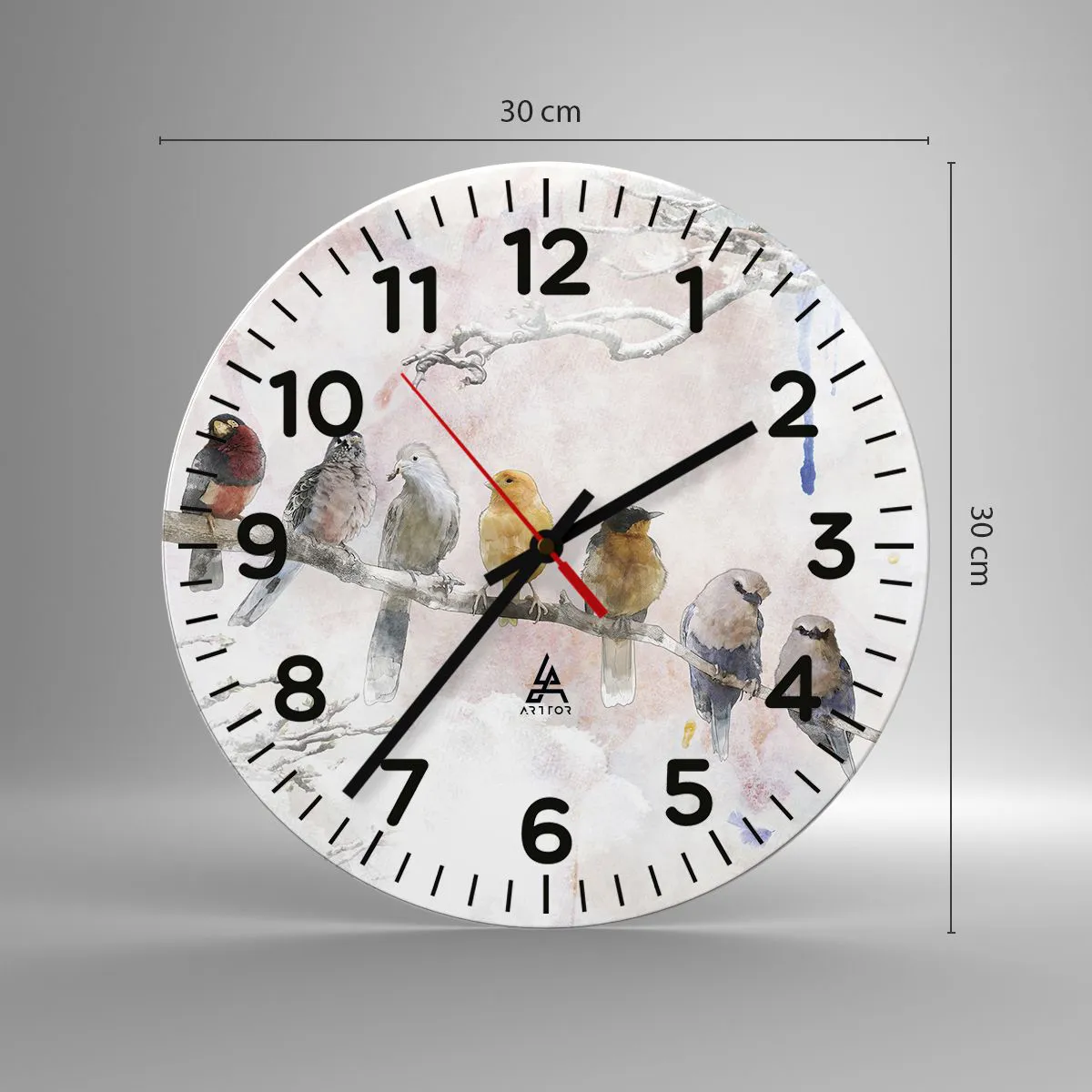Hodiny sú vyrobené z odolného skla s hrúbkou 4 mm. Sklo zachováva prirodzené farby potlače