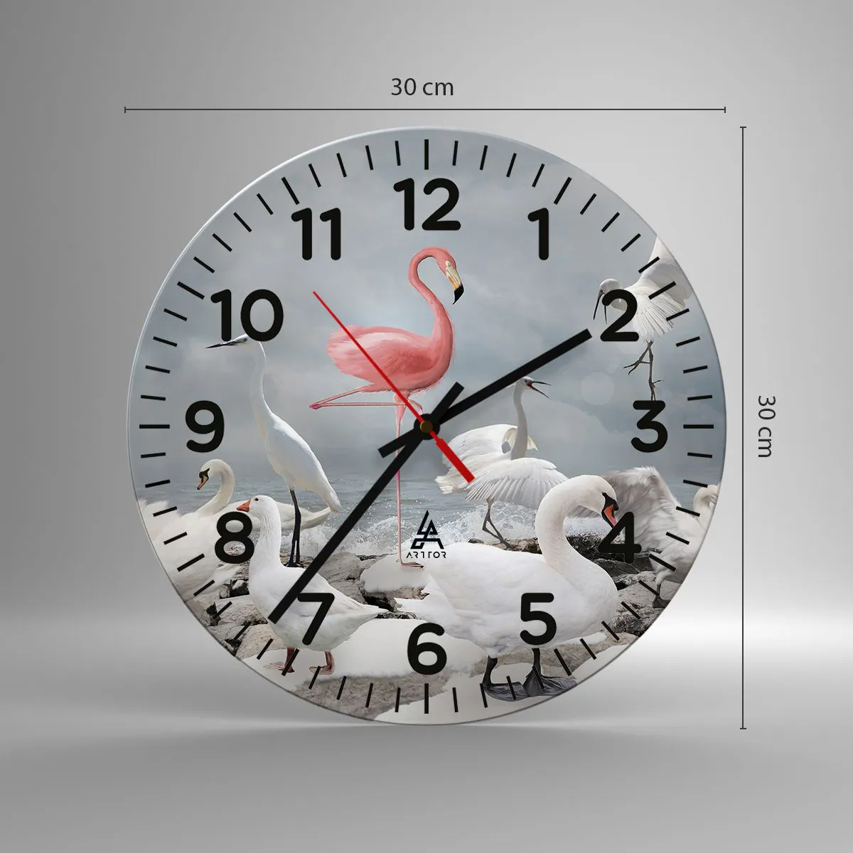 Hodiny sú vyrobené z odolného skla s hrúbkou 4 mm. Sklo zachováva prirodzené farby potlače