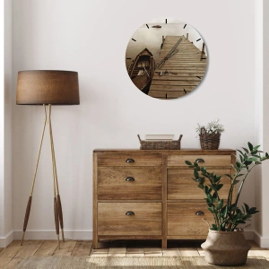 - Tieto nástenné hodiny v sépiovom odtieni s motívom lode na drevenom móle vyvolávajú pokojnú a nostalgickú atmosféru. Sú ideálne pre milovníkov vintage štýlu a harmónie.