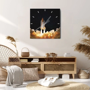 Nástenné hodiny - Štart vesmírnej rakety na pozadí hviezdnej oblohy - 30x30cm - Ad astra! - Moderná nástenná dekorácia do obývacej izby, kuchyne a spálne ARTTOR