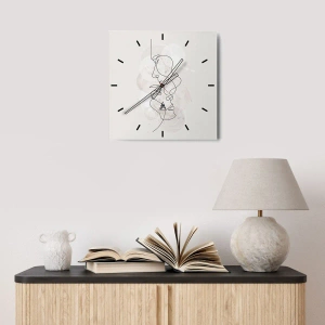 Nástenné hodiny - Minimalistická grafika dvoch prepletených tvárí v štýle linkovej grafiky. - 30x30cm - Zamotaní v objatí - Moderná nástenná dekorácia do obývacej izby, kuchyne a spálne ARTTOR