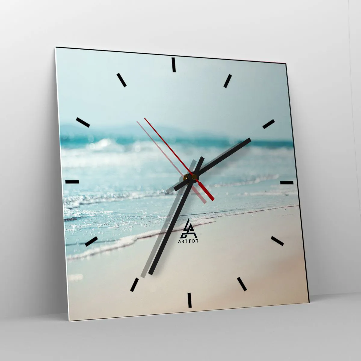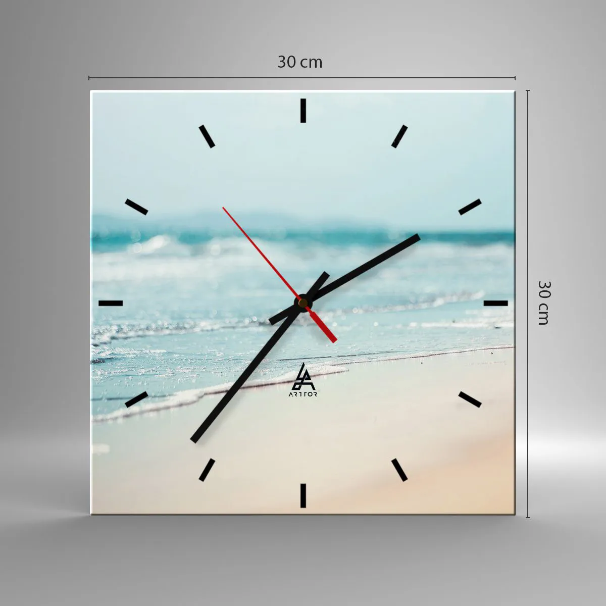 Hodiny sú vyrobené z bezpečného skla s hrúbkou 4mm. Technológia výroby hodín je v súlade s triedou bezpečnosti 2B2 podľa normy PN-EN 12600:2004, ktorá garantuje odolnosť proti nárazom. Hodiny na skle sú pripravené na zavesenie – majú kovový záves upevnený na zadnej strane hodín a penovú dištančnú podložku, ktorá upravuje vzdialenosť hodín od steny. Hodiny majú tichý plávajúci mechanizmus napájaný 1,5 V batériou - AA batéria (batéria nie je súčasťou balenia).